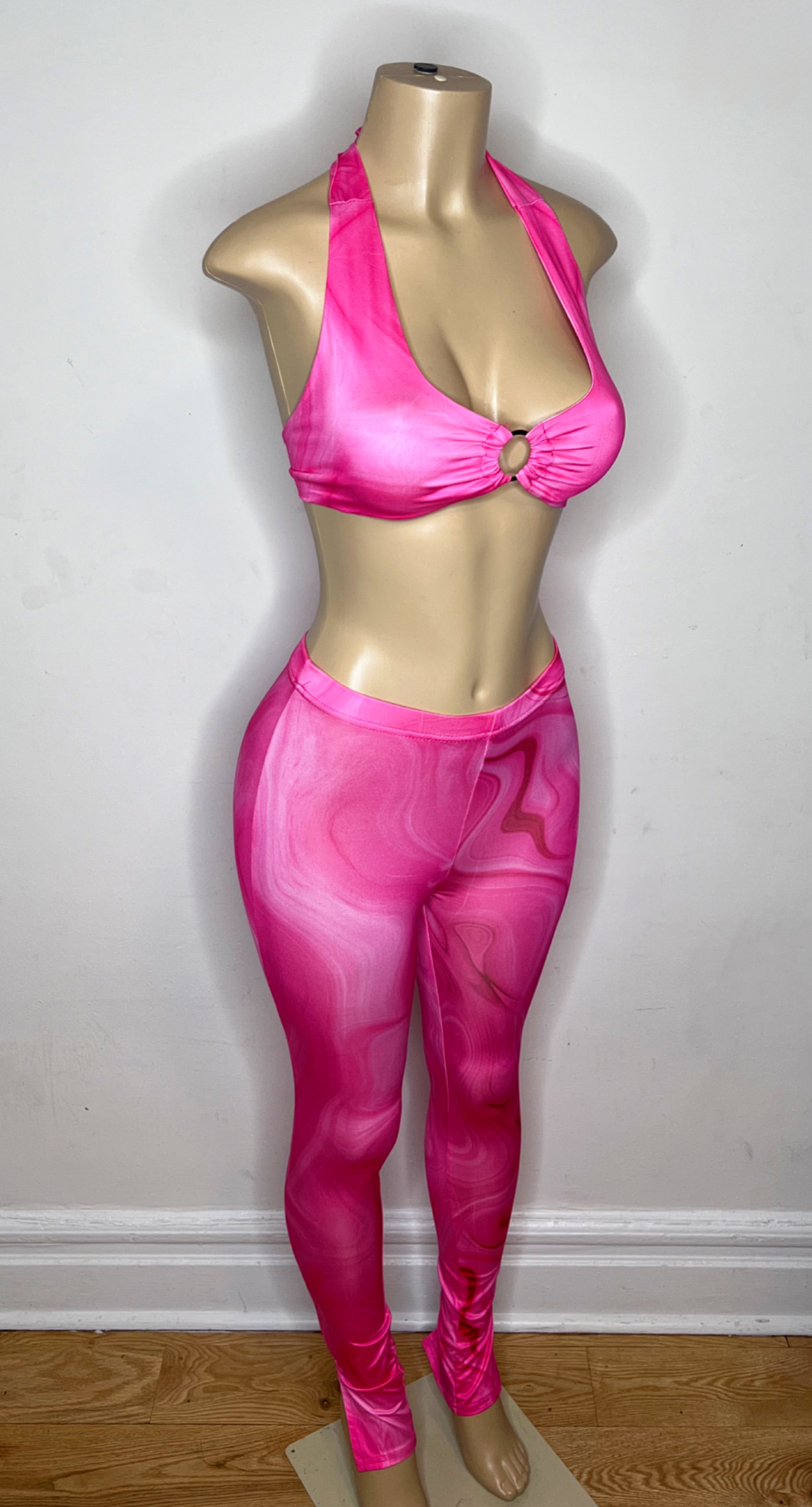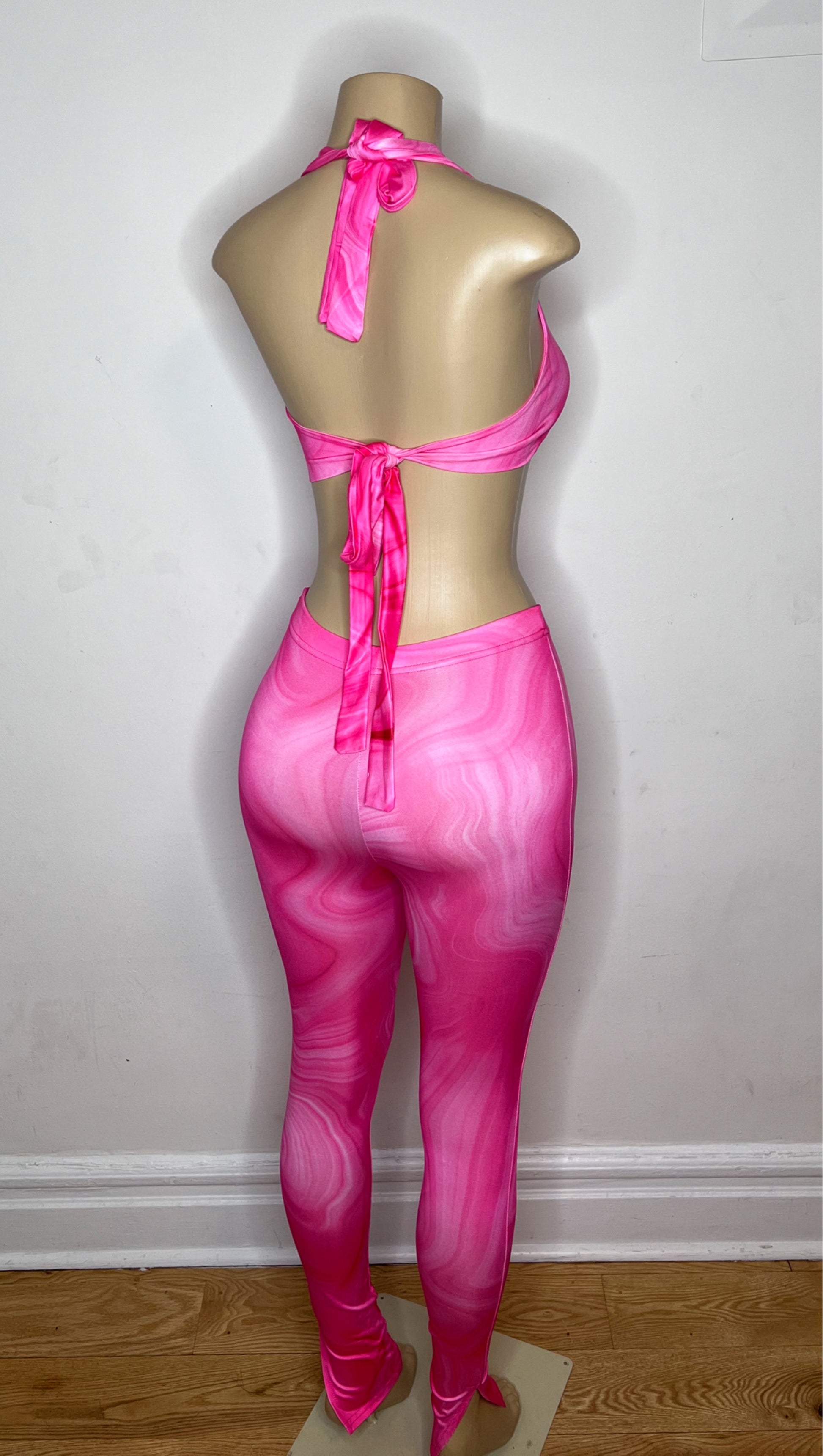 Printed Hanging Neck Tops Pantsuits